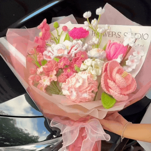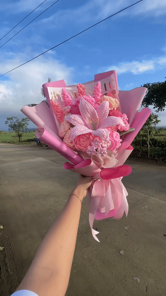 Cotton Crochet Lighted Flower Bouquet